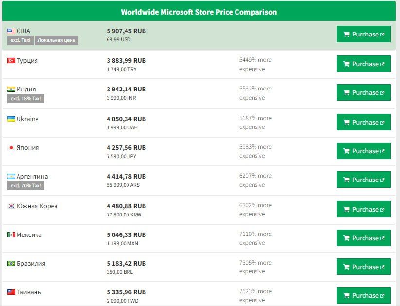 Цены на игры в Xbox Store, как и в Steam, различаются: в разных странах одни и те же тайтлы могут стоить дешевле при пересчете на рубли. Смена региона аккаунта Xbox и покупка видеоигр в таких локациях позволяет существенно сэкономить.