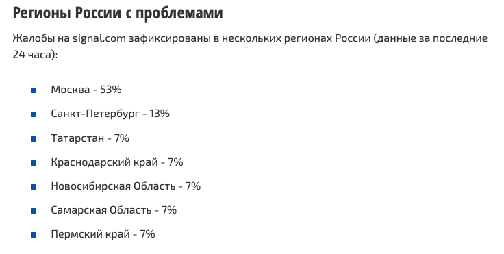 Сразу после объявления блокировки пользователи начали сообщать о сбоях в работе мессенджера. По данным сервиса «Сбой рф», количество жалоб быстро превысило 22 тысячи. Большинство пользователей отмечали, что Signal перестал открываться без использования VPN или режима обхода цензуры, встроенного в приложение​.